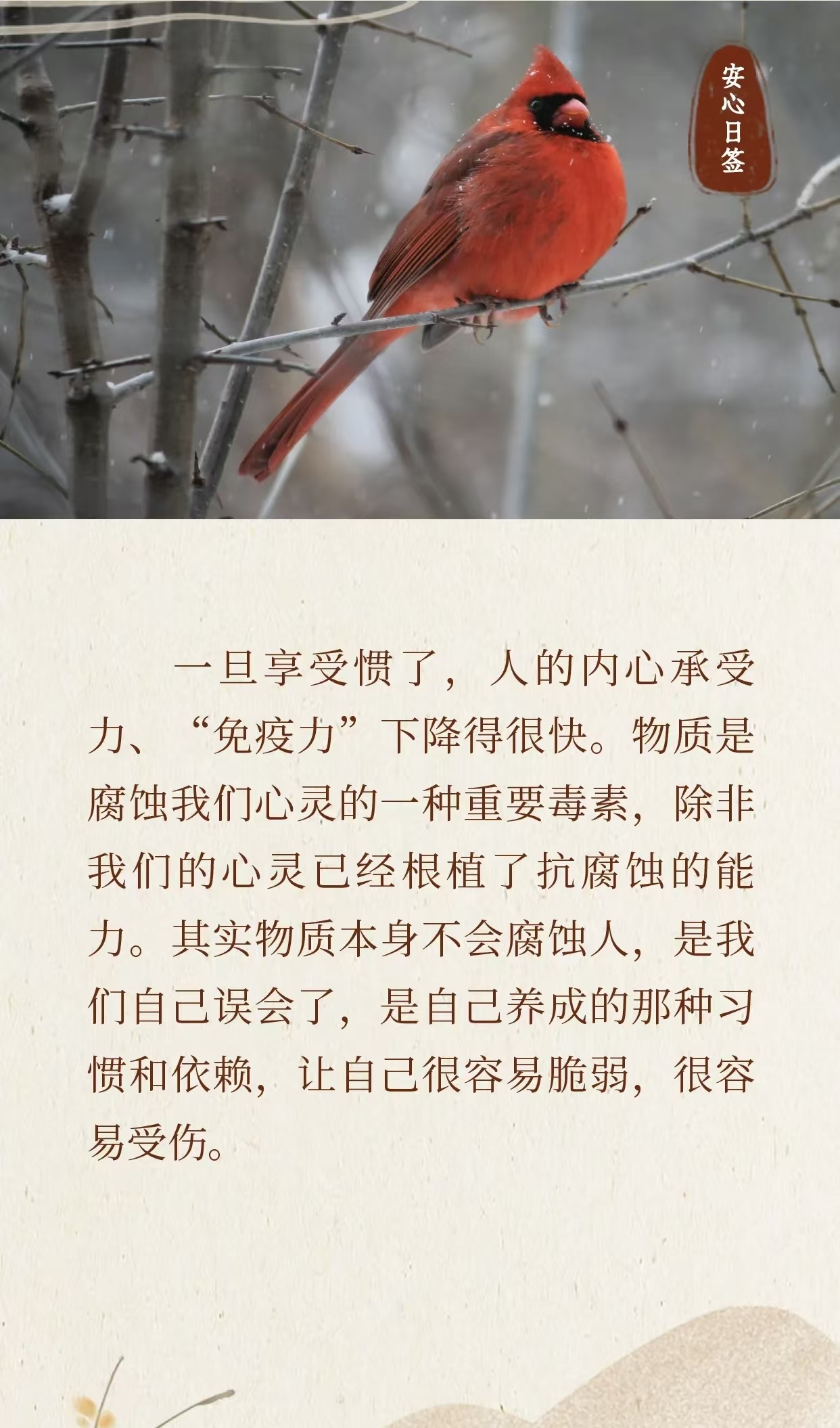 Οι υλικές ανέσεις λειτουργούν σαν τοξίνη που διαβρώνει το νου μας, εκτός αν έχουμε ήδη καλλιεργήσει την ικανότητα να αντισταθούμε σε τέτοια διάβρωση.